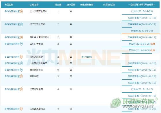 除揚子江藥業(yè)集團外,恒瑞醫(yī)藥、正大天晴藥業(yè)集團、奧賽康、齊魯制藥、美大康佳樂藥業(yè)等5家企業(yè)也提交了多西他賽注射液的一致性評價補充申請。羅欣藥業(yè)、費森尤斯卡比的按仿制4類申報的多西他賽上市申請已處于在審評審批狀態(tài)。