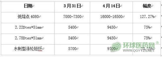 除此之外,漲價(jià)的還有無紡布原料。據(jù)了解,近期S2040的價(jià)格也明顯走高。4月13日,神華包頭S2040的拍賣價(jià)達(dá)到了22000元/噸,而其4月10日的價(jià)格僅為11000元/噸。有關(guān)人士預(yù)測(cè),S2040的價(jià)格可能會(huì)繼續(xù)暴漲,估計(jì)要上3萬。