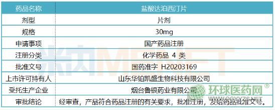 4月17日,新三板藥企廣東泰恩康醫(yī)藥發(fā)布公告稱,子公司山東華鉑凱盛近日收到了國家藥監(jiān)局核準(zhǔn)簽發(fā)的鹽酸達(dá)泊西汀片《藥品注冊批件》。鹽酸達(dá)泊西汀是目前唯一獲批用于治療早泄(PE)的化學(xué)藥,本次獲批的產(chǎn)品是國內(nèi)首家按照4類仿制申報(bào),視同通過一致性評價(jià),并為國內(nèi)首仿。
