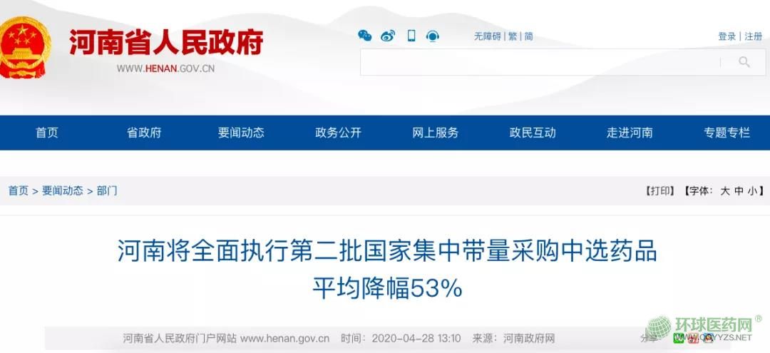 4月28日,河南省人民政府發(fā)布消息稱,河南將全面執(zhí)行第二批國家集中帶量采購中選藥品,要求各級醫(yī)藥機構(gòu)于2020年4月30日前全面執(zhí)行。