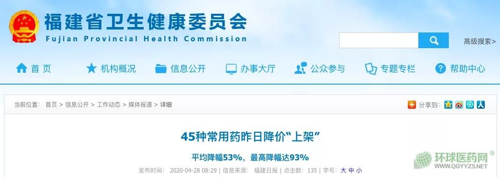 據(jù)福建日報消息,4月27日起,包括多種常用藥和抗癌藥在內(nèi)的45種藥品在福建省執(zhí)行新價格銷售,這些藥品包括國家第二批集中采購的32種藥品和福建省集中帶量采購的13種藥品。