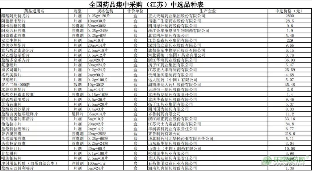 據(jù)了解,在江蘇的中選品種里面,如四川綠葉制藥股份有限公司生產(chǎn)的治療糖尿病常用藥品“阿卡波糖膠囊”(50mg規(guī)格,30片/盒),原銷售價格為41.23元,降價后僅9.6元,降幅達(dá)77%;石藥集團(tuán)歐意藥業(yè)有限公司生產(chǎn)的抗腫瘤藥品“注射用紫杉醇白蛋白結(jié)合型”(100mg/支),每支原銷售價格2500元,降價后747元,降幅達(dá)70%……目前已經(jīng)可以正常按降價后的價格買到。