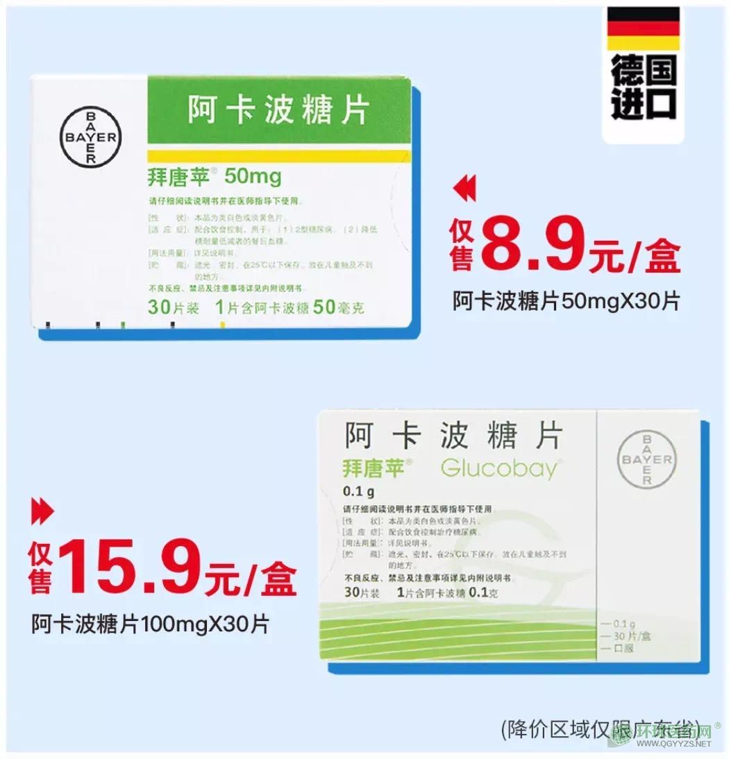 根據(jù)第一批國家藥品集中采購中選結(jié)果,拜耳醫(yī)藥保健有限公司生產(chǎn)的阿卡波糖片(規(guī)格:50mg*30片)中選價(jià)格5.42元/盒。主要供應(yīng)省份分別為北京、天津、山西、內(nèi)蒙古、遼寧、安徽、福建、江西、山東、 河南、湖南、廣東、海南、云南、甘肅、青海。