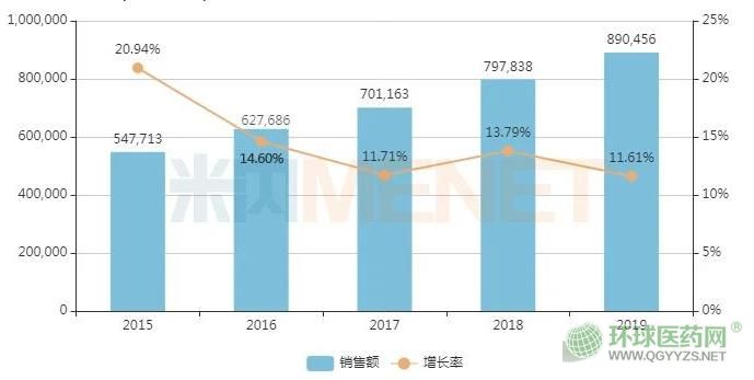近年中國公立醫(yī)療機(jī)構(gòu)終端開喉劍吸入劑銷售情況(單位:萬元)