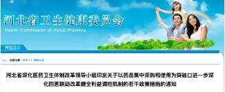 近日,河北省衛(wèi)健委發(fā)布《河北省深化醫(yī)藥衛(wèi)生體制改革領(lǐng)導(dǎo)小組印發(fā)關(guān)于以藥品集中采購(gòu)和使用為突破口進(jìn)一步深化四醫(yī)聯(lián)動(dòng)改革健全利益調(diào)控機(jī)制的若干政策措施的通知》(以下簡(jiǎn)稱(chēng)《通知》)。