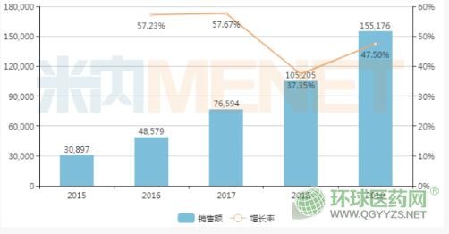 米內(nèi)網(wǎng)數(shù)據(jù)顯示,2019年中國(guó)城市公立醫(yī)院、縣級(jí)公立醫(yī)院、城市社區(qū)中心及鄉(xiāng)鎮(zhèn)衛(wèi)生院(簡(jiǎn)稱中國(guó)公立醫(yī)療機(jī)構(gòu))終端匹伐他汀銷售額為15.52億元,同比增長(zhǎng)47.50%。其中,華潤(rùn)雙鶴占據(jù)43.56%的市場(chǎng)份額,萬(wàn)邦醫(yī)藥占比20.75%,原研廠家日本興和市場(chǎng)份額僅有12.73%。