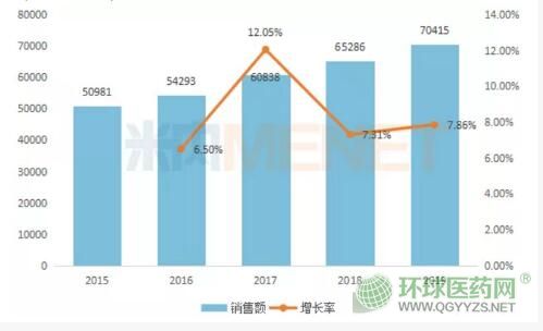 目前國(guó)內(nèi)市場(chǎng)上市銷售的枸櫞酸莫沙必利包括枸櫞酸莫沙必利片、枸櫞酸莫沙必利分散片、枸櫞酸莫沙必利膠囊及枸櫞酸莫沙必利口服溶液。米內(nèi)網(wǎng)數(shù)據(jù)顯示,2019年中國(guó)城市公立醫(yī)院、縣級(jí)公立醫(yī)院、城市社區(qū)中心以及鄉(xiāng)鎮(zhèn)衛(wèi)生院(簡(jiǎn)稱中國(guó)公立醫(yī)療機(jī)構(gòu))終端枸櫞酸莫沙必利銷售額為12.19億元,同比增長(zhǎng)4.63%,其中枸櫞酸莫沙必利片銷售額為7.04億元。