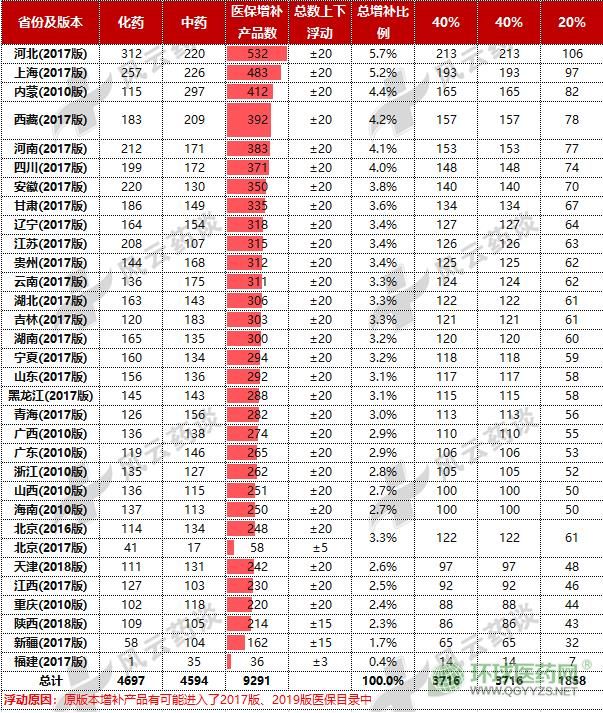 全國各省級醫(yī)保增補產(chǎn)品超10000品次,初步估計產(chǎn)品累計使用醫(yī)保金額至少在1000億以上,從總數(shù)上來說,化藥與中藥的省增數(shù)量差不多是1:1。