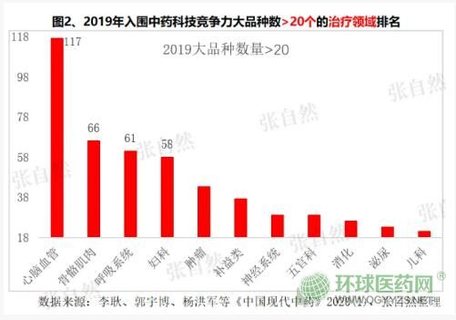 按治療領(lǐng)域分,入圍品種數(shù)最多的是治療心腦血管疾病的藥品,共有117個入圍,占了全國總數(shù)的1/5,如腦心通膠囊(步長)、麝香保心丸(上海和黃)等;骨骼肌肉、呼吸系統(tǒng)和婦科用藥緊追其后,分別有66、61和58個品種入圍,上述前4個治療領(lǐng)域占了2019中藥大品種總數(shù)的的一半以上(53%)。
