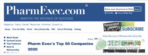 近日,美國《制藥經(jīng)理人》公布了2020年全球制藥公司50強(qiáng)名單,且在名單中附上各制藥企業(yè)的處方藥年度銷售排名。