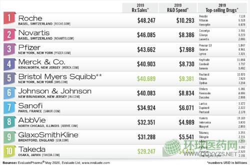 盡管艾伯維(排名第8)最終于上個(gè)月完成了以620億美元收購艾爾建(排名18)的收購交易,但二者還未合并計(jì)算,主要是新冠肺炎的大流行拖延了這一重要并購案的進(jìn)度。因此在未來1-2年內(nèi),艾伯維的全球排名可能迅速提升至前五名。