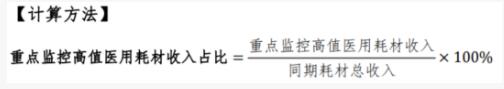 如《三級公立醫(yī)院手冊》要求,考核年度醫(yī)院重點監(jiān)控高值醫(yī)用耗材收入占同期耗材總收入比例,計算方法如下:
