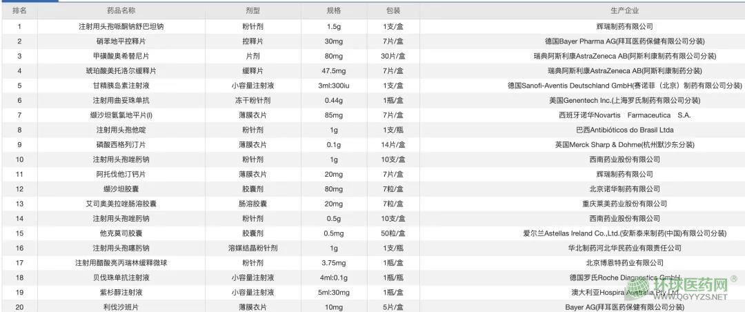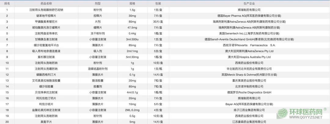 結(jié)合4月、5月兩個(gè)月的藥品銷售排行榜,輝瑞制藥的注射用頭孢哌酮鈉舒巴坦鈉、拜耳的硝苯地平控釋片和阿斯利康的甲磺酸奧希替尼片兩個(gè)月以來(lái)穩(wěn)居前三名。注射用曲妥珠單抗和貝伐珠單抗、紫杉醇注射液等抗腫瘤藥物均在榜上徘徊。