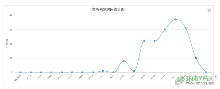 筆者查詢Open law文書(shū)網(wǎng)發(fā)現(xiàn),以“醫(yī)藥代表 統(tǒng)方”作為關(guān)鍵詞搜索,共有162個(gè)案件。從判決時(shí)間來(lái)看,涉及醫(yī)藥代表統(tǒng)方的案件自2014年飆升,2017年達(dá)到峰值,2018年開(kāi)始回落。從下圖數(shù)據(jù)我們也能看出來(lái),在多年的嚴(yán)厲打擊下,目前醫(yī)藥代表統(tǒng)方的情況,已經(jīng)有所好轉(zhuǎn)。