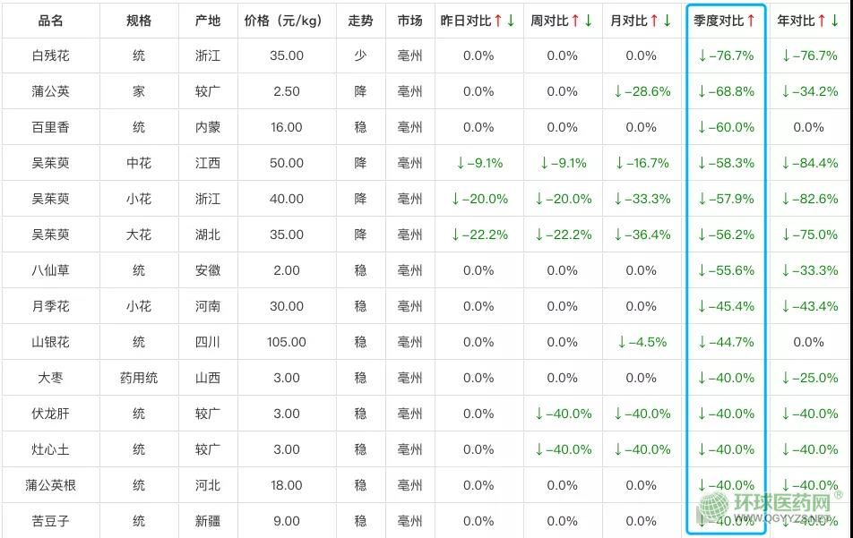 最新數(shù)據(jù)顯示,一批中藥價(jià)格大跌。