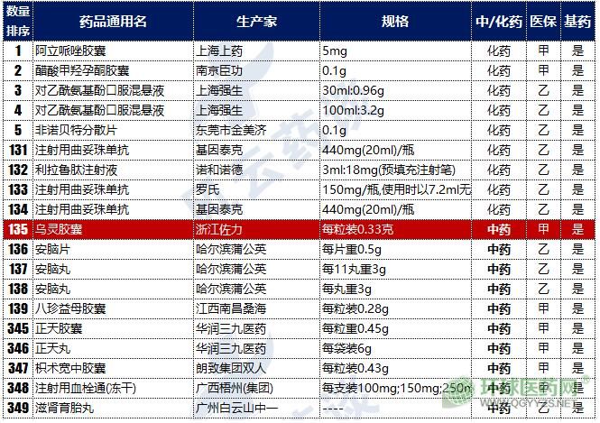 獨(dú)家基藥品規(guī)產(chǎn)品明細(xì)