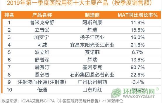 就具體產(chǎn)品來看,揚子江藥業(yè)的加羅寧,同比增長8.5%,仍然位居第一;阿斯利康的普米克令舒同比略微下降0.3%,位居第二名;輝瑞的舒普深、石藥集團的恩必普、東陽光藥的可威,羅氏的赫賽汀,分別以11.6%、31.8%、37.8%、34.4%位居第三至六名。