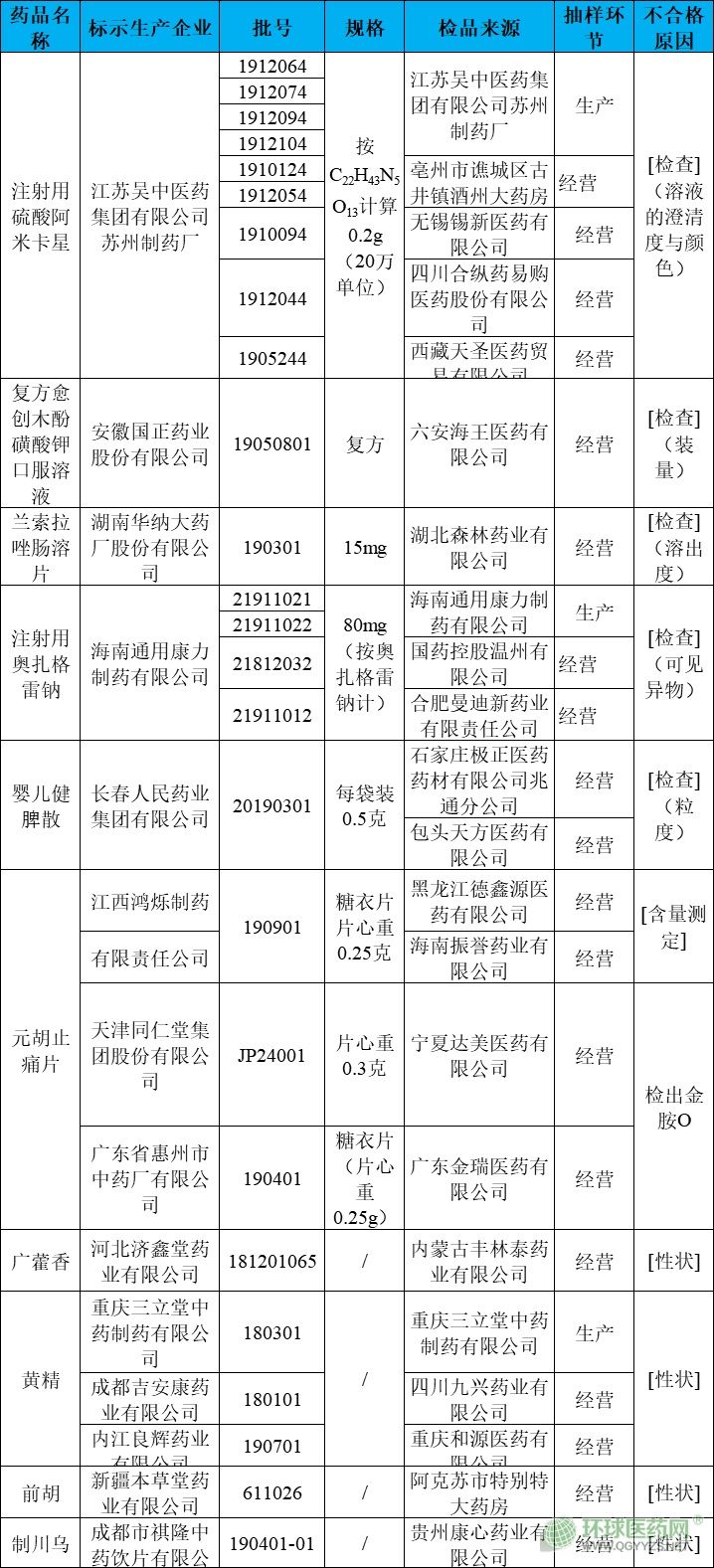 經(jīng)上海市食品藥品檢驗所檢驗,標示為海南通用康力制藥有限公司生產(chǎn)的4批次注射用奧扎格雷鈉不符合規(guī)定,不符合規(guī)定項目為可見異物。