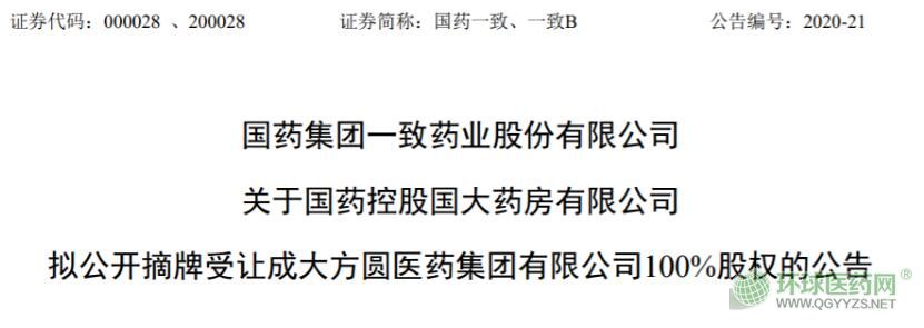 7月20日晚,國(guó)藥集團(tuán)一致藥業(yè)股份有限公司發(fā)布公告稱,遼寧成大將其持有的成大方圓100%股權(quán)公開掛牌轉(zhuǎn)讓,公開掛牌轉(zhuǎn)讓底價(jià)為186,000萬元人民幣,公司控股子公司國(guó)大藥房擬通過公開摘牌方式受讓該掛牌股權(quán)。