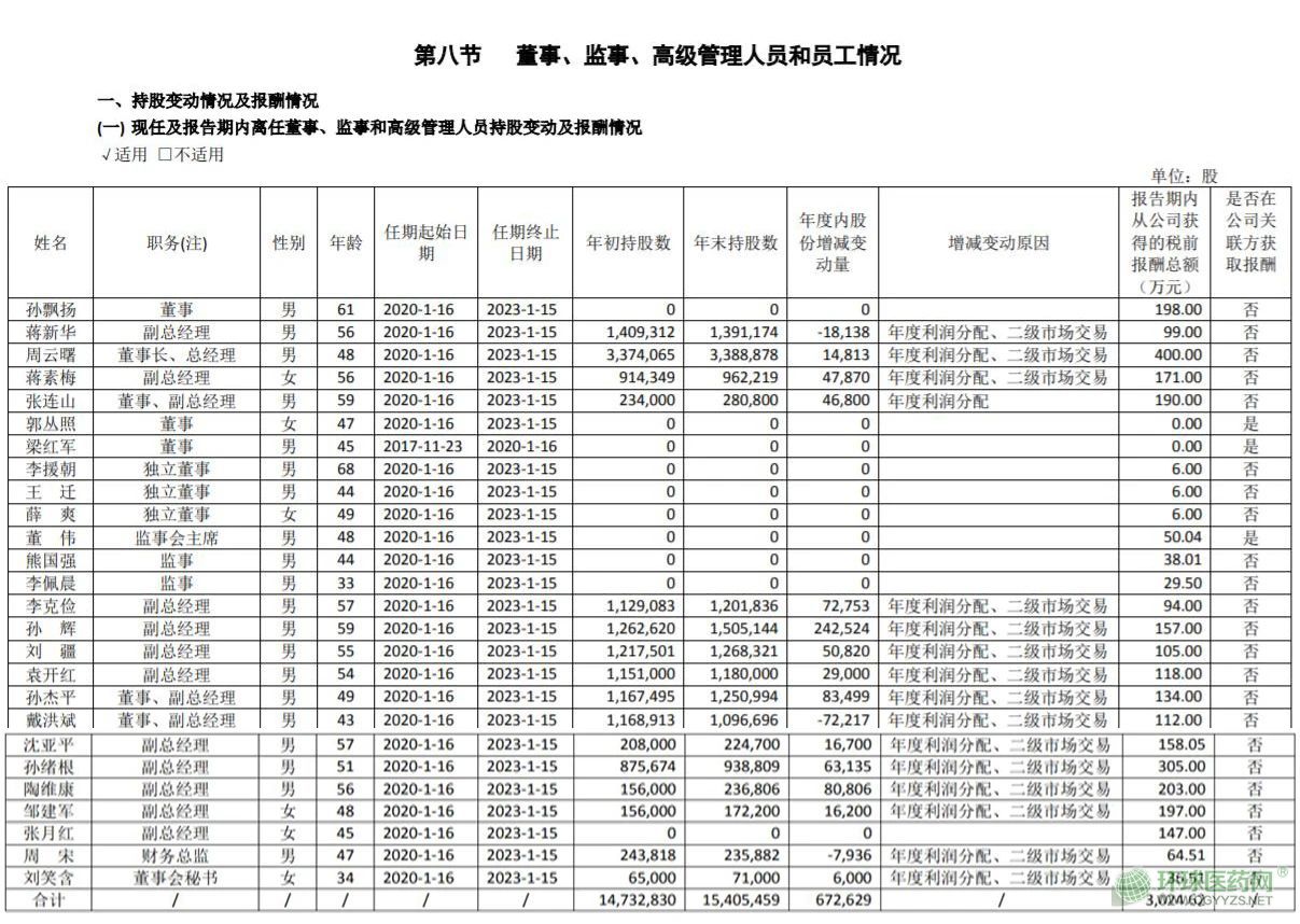 在辭職之前,恒瑞醫(yī)藥2019年報(bào)披露顯示,上述四人任期自2020年1月16日開始,任期終止于2023年1月15日,在新的管理層里任期也滿半年。蔣新華和李克儉的稅前薪酬分別是99萬(wàn)元和94萬(wàn)元,孫輝和劉疆稅前年薪分別為157萬(wàn)元和105萬(wàn)元。截至2019年12月31日,蔣新華持有139.11萬(wàn)股,李克儉持有120.18萬(wàn)股股份,孫輝持有150.51萬(wàn)股股份;劉疆持有126.83萬(wàn)股股份。具體如下: