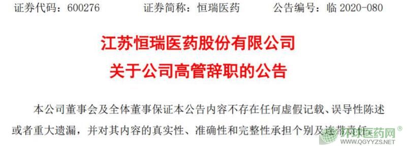 恒瑞多位高管集中辭職