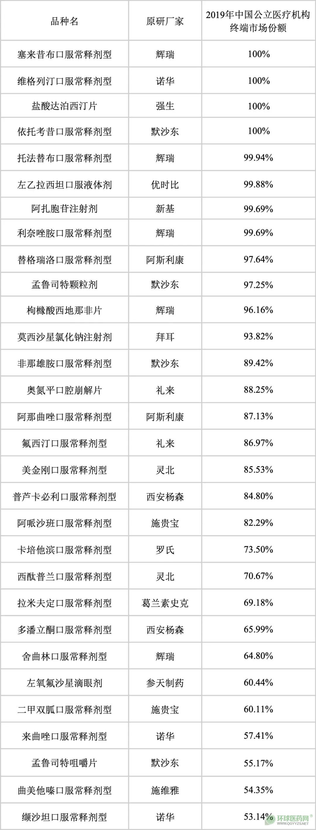 第三批國采原研藥市場份額過半的品種