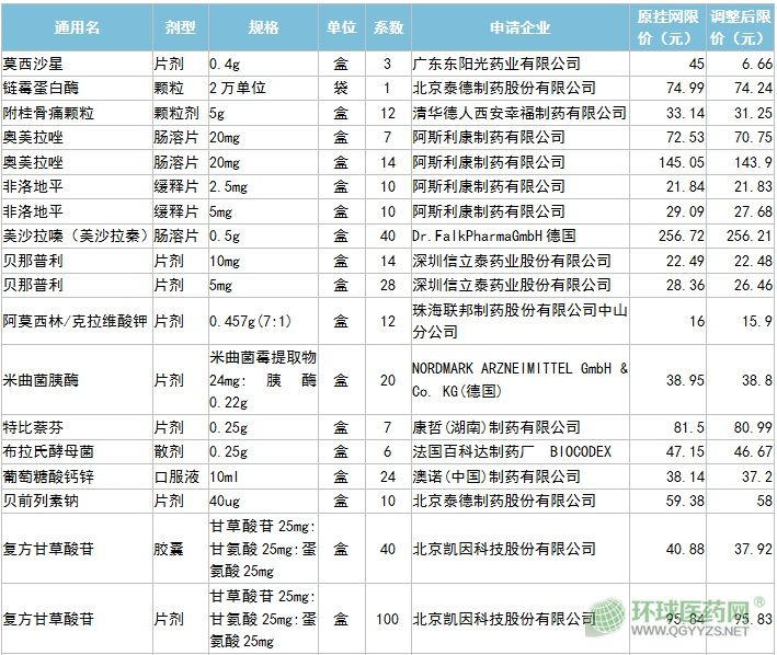 據(jù)統(tǒng)計,在65個藥品中,廣東東陽光藥業(yè)的莫西沙星片劑原掛網(wǎng)限價45元,調整后限價6.66元,降幅超過80%;其次是武漢大安制藥的氟比洛芬酯注射液降幅近40%。此外,還有珠海聯(lián)邦制藥的美金剛口服溶液劑和正大天晴藥業(yè)的唑來膦酸注射液降幅均超過20%。