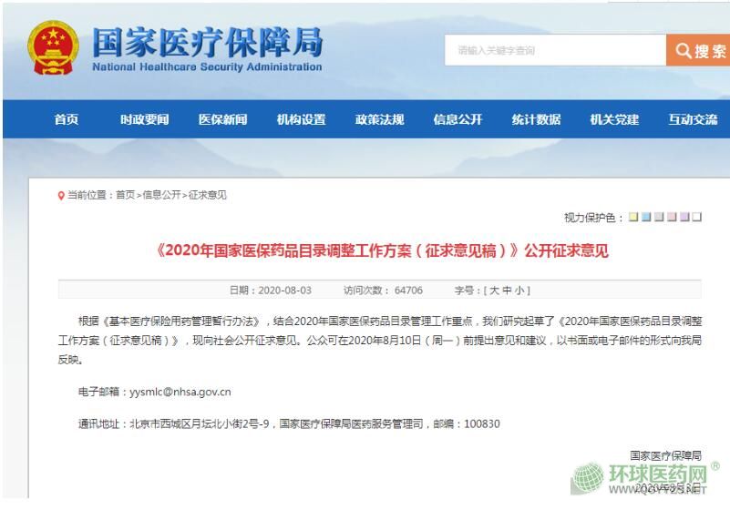 8月3日,國家醫(yī)保局發(fā)布《2020年國家醫(yī)保藥品目錄調(diào)整工作方案(征求意見稿)》(以下簡稱“意見稿”),意見征求時間截止2020年8月10日。