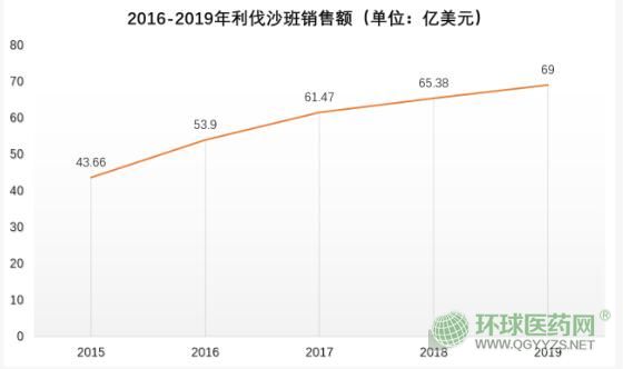 公開數(shù)據(jù)顯示,作為全球銷量前五的抗血栓藥物利伐沙班在2020年即將迎來專利到期。該藥曾在2017年以61.47億美元的銷售額入圍全球十大暢銷藥物榜單,而盡管2019年其銷售額還能達到68億美元,但不可否認的是,2017年以后,利伐沙班的增速已經(jīng)明顯放緩。