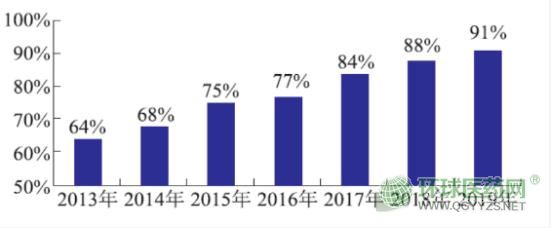 2013-2019年全國(guó)中藥材及飲片抽驗(yàn)合格率