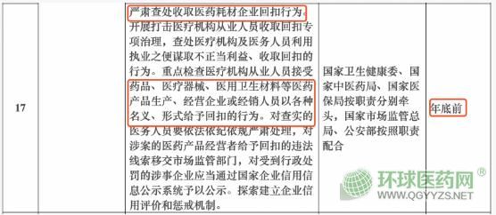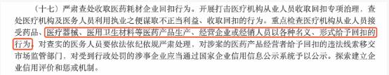 方案指出,將嚴(yán)肅查處收取醫(yī)藥耗材企業(yè)回扣行為。開展打擊醫(yī)療機構(gòu)從業(yè)人員收取回扣專項治理,查處醫(yī)療機構(gòu)及醫(yī)務(wù)人員利用執(zhí)業(yè)之便謀取不正當(dāng)利益、收取回扣的行為。