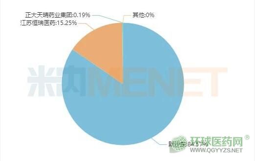 注射用醋酸卡泊芬凈是全身用抗真菌藥重磅品種,米內(nèi)網(wǎng)數(shù)據(jù)顯示,該產(chǎn)品2019年在中國城市公立醫(yī)院、縣級(jí)公立醫(yī)院、城市社區(qū)中心及鄉(xiāng)鎮(zhèn)衛(wèi)生院(簡稱中國公立醫(yī)療機(jī)構(gòu))終端銷售額超過20億元。隨著國內(nèi)仿制藥陸續(xù)獲批上市,原研企業(yè)默沙東的市場份額下滑明顯,2017-2019年分別為98.45%、90.95%、84.57%。恒瑞首仿上市有時(shí)間優(yōu)勢,市場份額不斷攀升,2019年已上升15%。