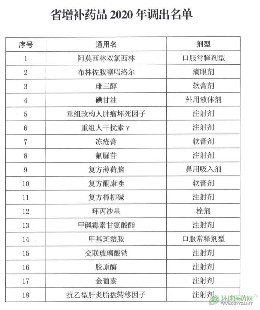 本次調(diào)出品種自2020年9月1日起執(zhí)行,屆時所調(diào)出藥品的費用,省基本醫(yī)療保險、工傷保險和生育保險和生育保險基金不再予以支付。