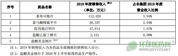 擬中選的 5 個(gè)藥品 2019 年度收入情況如下: