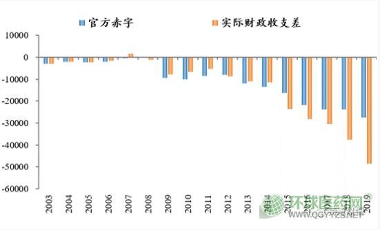 2019年財政收入少于預(yù)算2118億元,但支出卻高于預(yù)算3630億元,增速8.1%,高于預(yù)算的6.5%,支出預(yù)算執(zhí)行率為101.5%。官方赤字為2.76萬億,但實(shí)際上的收支差為4.8萬億,中間的差額通過歷史結(jié)轉(zhuǎn)結(jié)余資金、政府性基金和國有資本經(jīng)營預(yù)算調(diào)入解決?紤]到2.15萬億的專項(xiàng)債,實(shí)際赤字率高達(dá)7.1%。