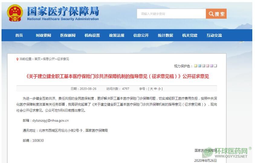 2020年8月26日,國(guó)家醫(yī)保局發(fā)布《關(guān)于建立健全職工基本醫(yī)療保險(xiǎn)門(mén)診共濟(jì)保障機(jī)制的指導(dǎo)意見(jiàn)(征求意見(jiàn)稿)》,公開(kāi)向社會(huì)征求意見(jiàn)。