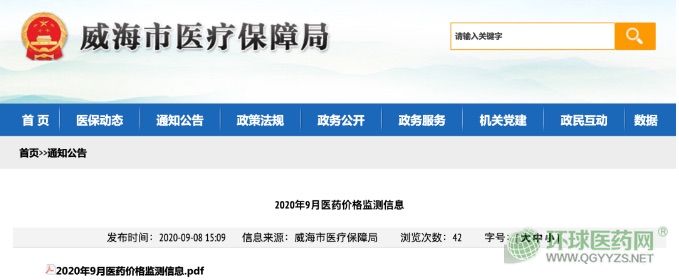 威海市醫(yī)保局表示,為及時跟蹤了解醫(yī)藥市場價格和醫(yī)療費用變動情況,選取部分藥品、醫(yī)用耗材、醫(yī)療服務價格進行監(jiān)測,每月定期公布。