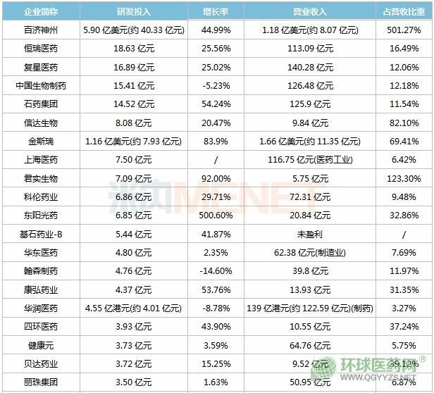 近8成藥企加大研發(fā)投入,這7家同比增長超100%