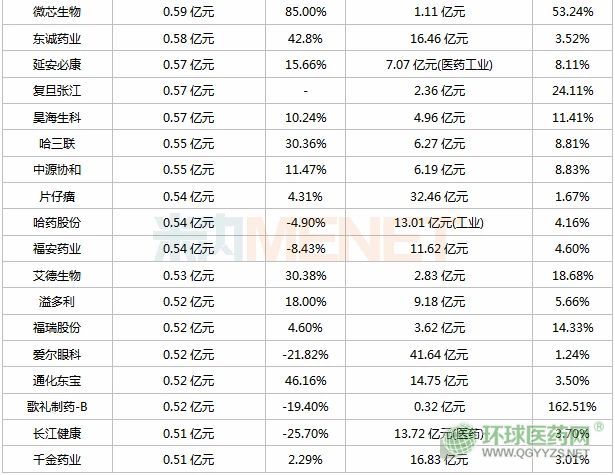 表:2020年上半年研發(fā)投入超過5000萬的上市藥企