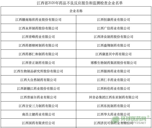 根據(jù)通知要求,江西省藥監(jiān)局將組織檢查人員對(duì)以下名單內(nèi)企業(yè)開展不良反應(yīng)報(bào)告和監(jiān)測(cè)現(xiàn)場(chǎng)專項(xiàng)檢查,一共33家藥企,檢查時(shí)間為9月下旬。