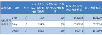 注:廣東省第三批國(guó)采西地那非預(yù)采購(gòu)量情況表。