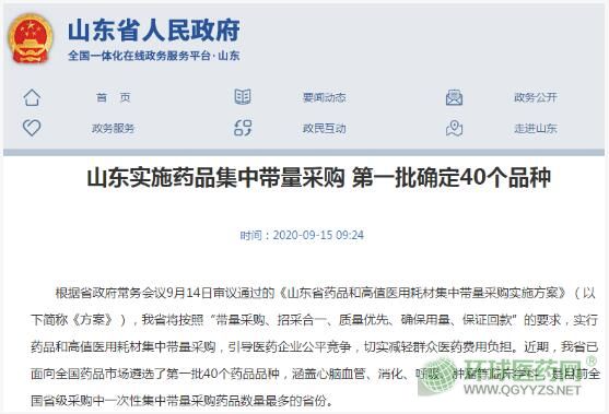 山東省第一批藥品集中帶量采購(gòu)有40個(gè)品種,涵蓋心腦血管、消化、呼吸、腫瘤等臨床學(xué)科,是目前全國(guó)省級(jí)采購(gòu)中一次性集中帶量采購(gòu)藥品數(shù)量最多的省份。