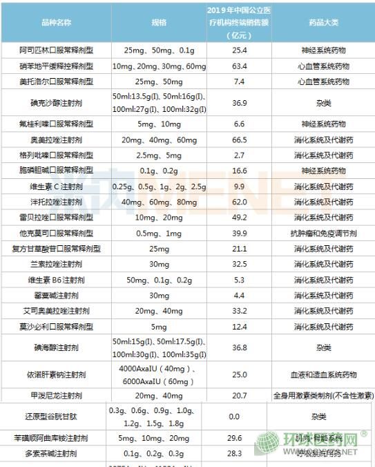 米內(nèi)網(wǎng)數(shù)據(jù)顯示,40個(gè)品種(105個(gè)品規(guī))2019年在中國(guó)城市公立醫(yī)院、縣級(jí)公立醫(yī)院、城市社區(qū)中心以及鄉(xiāng)鎮(zhèn)衛(wèi)生院(簡(jiǎn)稱中國(guó)公立醫(yī)療機(jī)構(gòu))終端銷售額超過(guò)10億元的有32個(gè)。