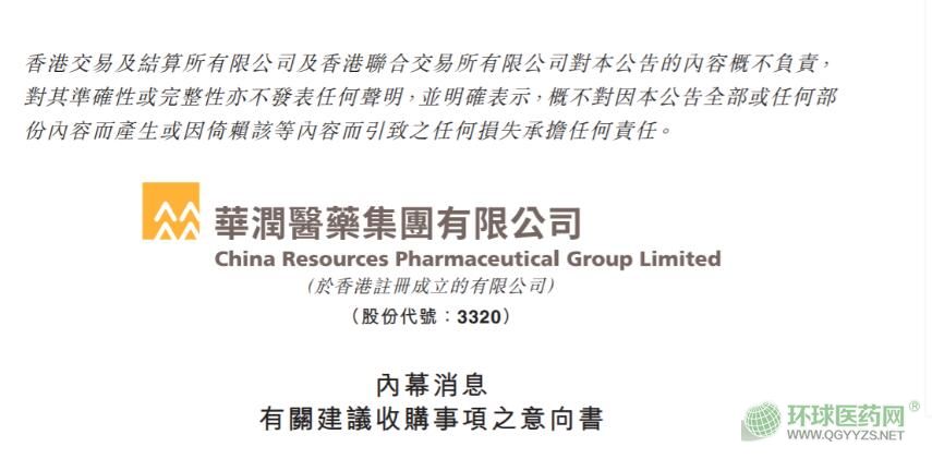 公告表示,華潤醫(yī)藥控股已與賣方訂立有關(guān)建議收購事項(xiàng)的意向書。華潤醫(yī)藥控股擬收購目標(biāo)公司之控股權(quán),而建議收購事項(xiàng)的條款須待華潤醫(yī)藥控股與賣方進(jìn)行進(jìn)一步磋商后,方可作實(shí)。