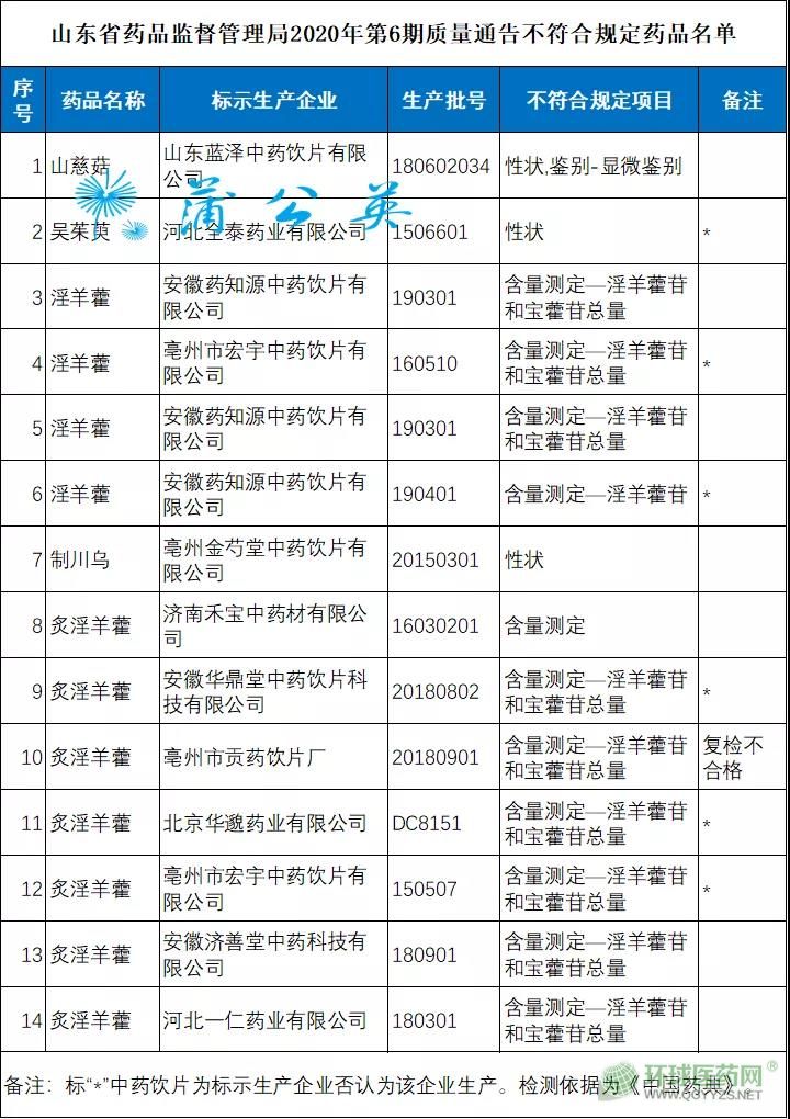 不合格品種均為中藥飲片:山慈菇、吳茱萸、淫羊藿(4批)、制川烏 、炙淫羊藿(7批次)。