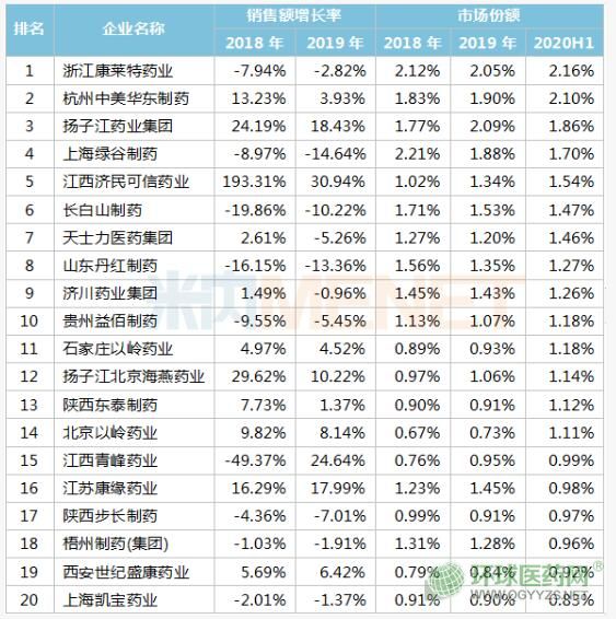 10月26日,米內(nèi)網(wǎng)公布2020年上半年重點(diǎn)城市公立醫(yī)院中成藥銷售Top20名單。