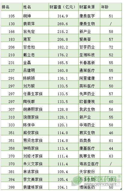 2020年福布斯中國(guó)富豪榜上醫(yī)療健康行業(yè)是名副其實(shí)的“聚寶盆”。它既是新晉富豪人數(shù)占比最多的行業(yè),也是財(cái)富增值較大的板塊之一。