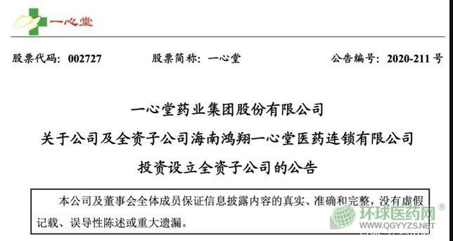 據(jù)公告介紹,海南一心堂醫(yī)藥有限公司,為一人有限責任公司 ,注冊資本1000萬人民幣,為海南一心堂100%控股。