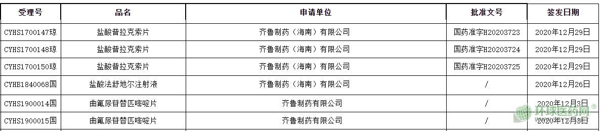 1月5日,NMPA官網公布了最新的藥品批準信息,齊魯制藥一舉拿下三個產品:曲氟尿苷替匹嘧啶片國內首仿、鹽酸法舒地爾注射液首家過評、鹽酸普拉克索片國內第三家。米內網數據顯示,目前齊魯的恩曲他濱膠囊3類仿制上市申請也進入了“在審批”狀態(tài),有望在近期迎來好消息。