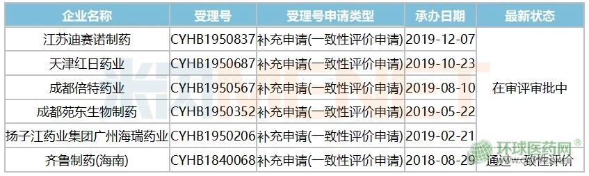 表1:申報鹽酸法舒地爾注射液一致性評價補充申請的企業(yè)情況